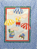 Description: This is a 100% cotton baby cheater quilt top fabric panel approximately 34 x 44 inches with the screen printed design of pigs with parachutes. Very bright and bold primary colors and will make a great baby quilt, a wall hanging or a Nap Blanket for Day Care. Inside panel is a soft blue background with white clouds. Outside boarder is a deep blue with white clouds. BP-26