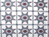Three full yards 90" x 108". This is a cotton blend cheater quilt top fabric with the design of a starburst. Center and tip of star is a burgundy calico. The rest of the star is done in slate and grays on a white background. Blocks are about 12" square and the sashing is about 1.5 inches.