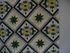 This Cotton Blend Material measures about 90" x 108" with the Bear Claw Design. The Blocks measure about 16" x 16" with the Design in Dark Gold, White, Hunter Green, Light Blue Grey. There is a 2" wide Sashing. The Design is against a White background.