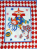 This is a 100% Cotton Baby Panel Fabric approximately 36" X 45". Bright,bold,primary colors of Clowns having fun. The outside border is 5" wide of a Red and White Checkerboard design.