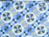 The Dresden Patch is in shades of blue and yellow on an off white. Screen printed on a 65/35 cotton/blend seamless fabric.