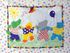 45". Bright,bold,primary colors of a Bear,Elephant, Duck, and Alligator flying Kites. There is a 5" Border of Red,